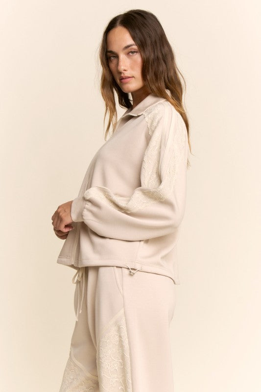 Lace and Detail Detail Zipper Front Jacket