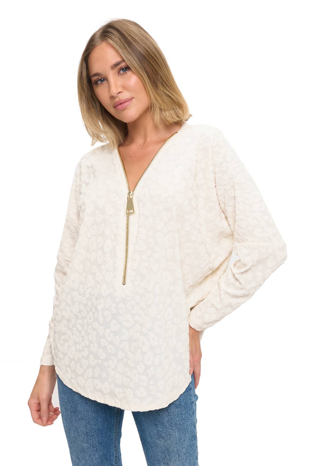 Zipper Detail Long Sleeve Top