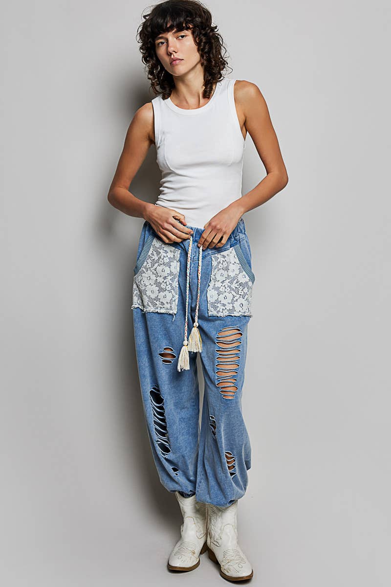 Kan Can High Rise Leg Distress Bootcut Jeans