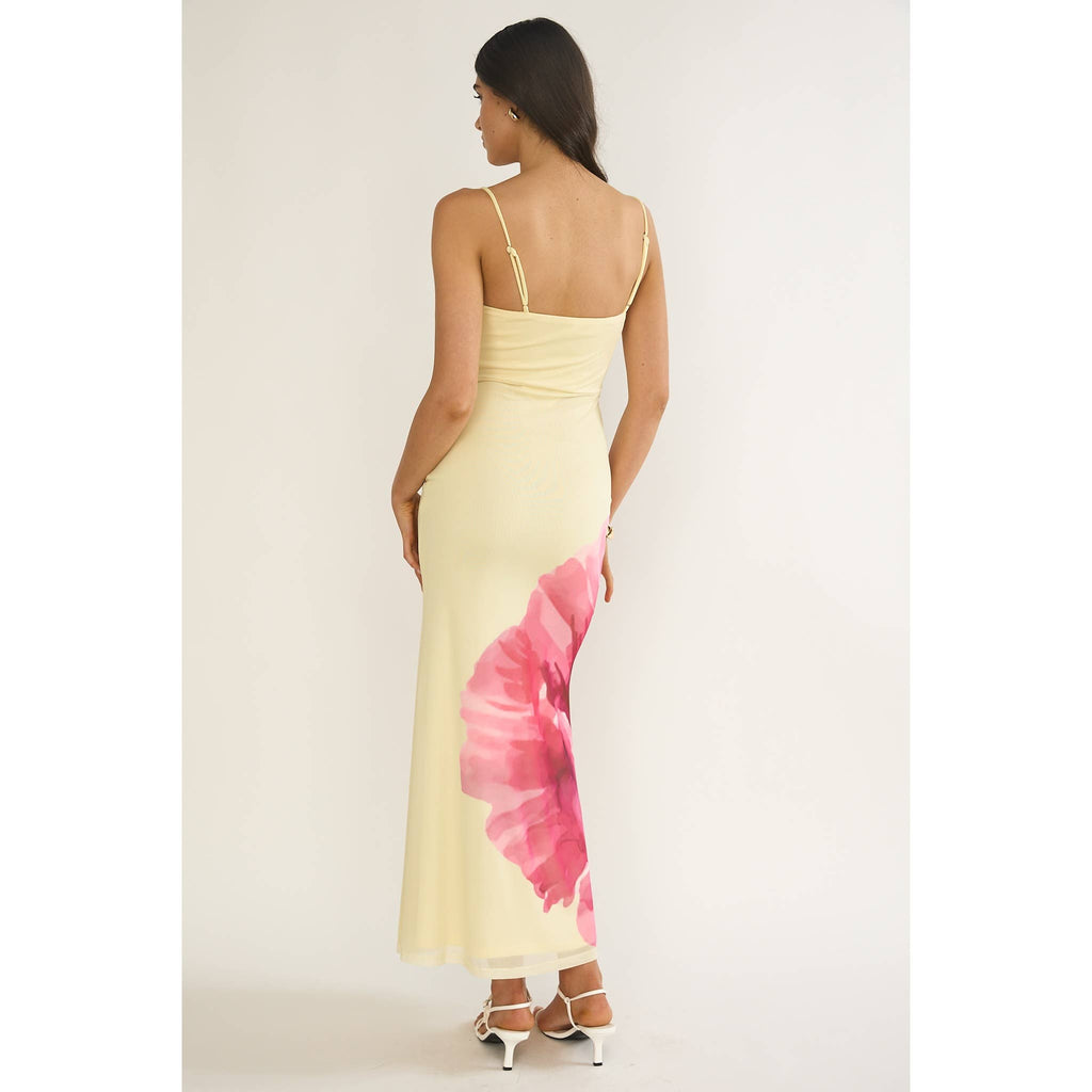 V-Neck Viscose Tiered Tassel Trim Wooden Bead Smocked Dress