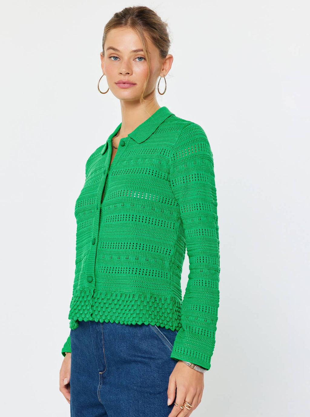 Crochet Knit Sweater Top - Bell Sleeve Boat Neck