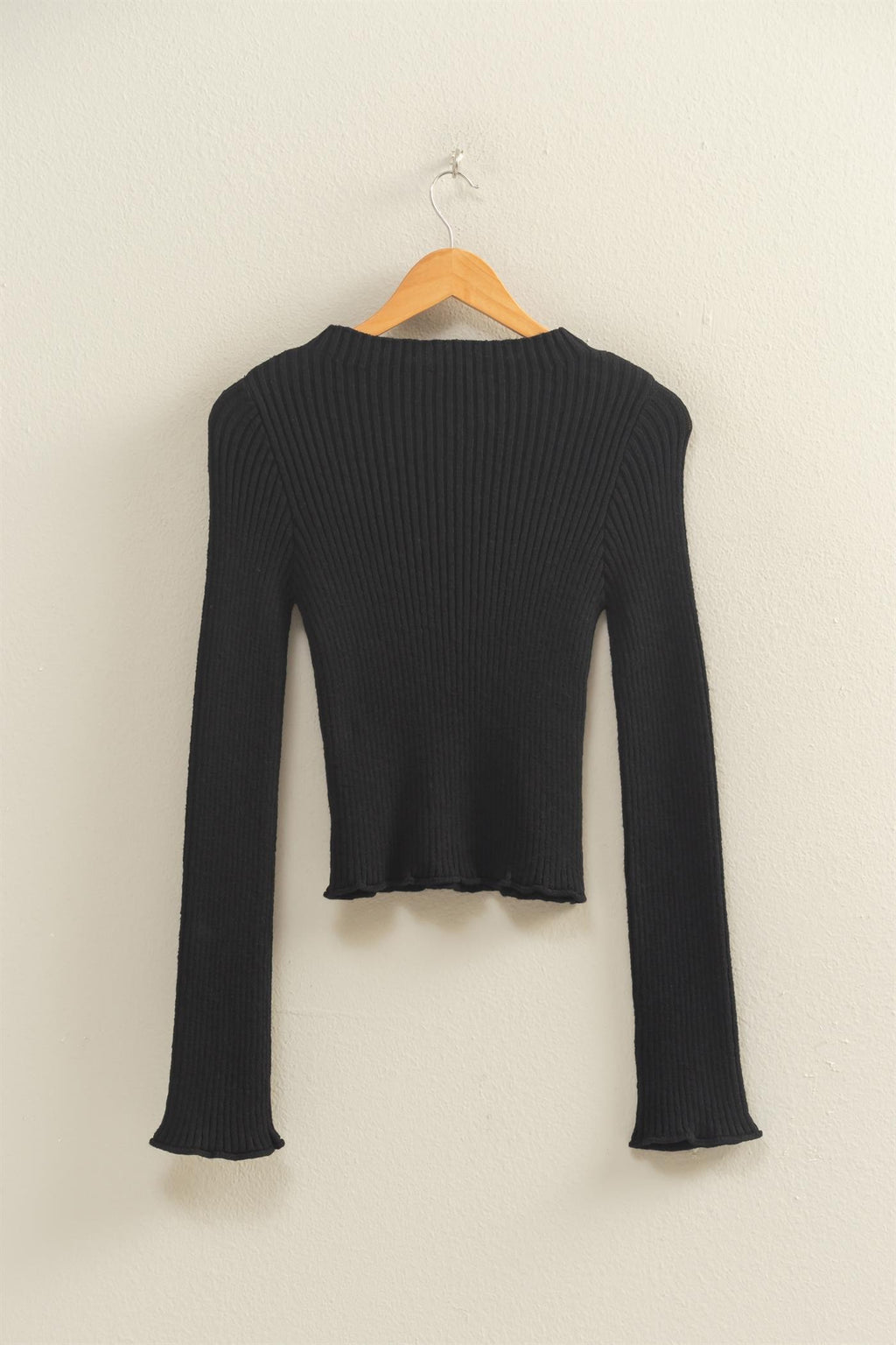 Sleek Mock Neck Ribbed Knit Top