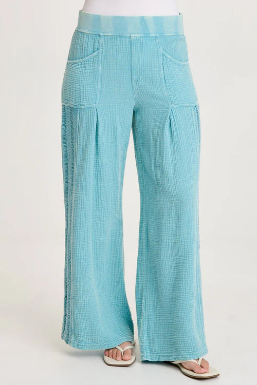 Lando Cotton Gauze Tiered Bottom Wide Leg Pants