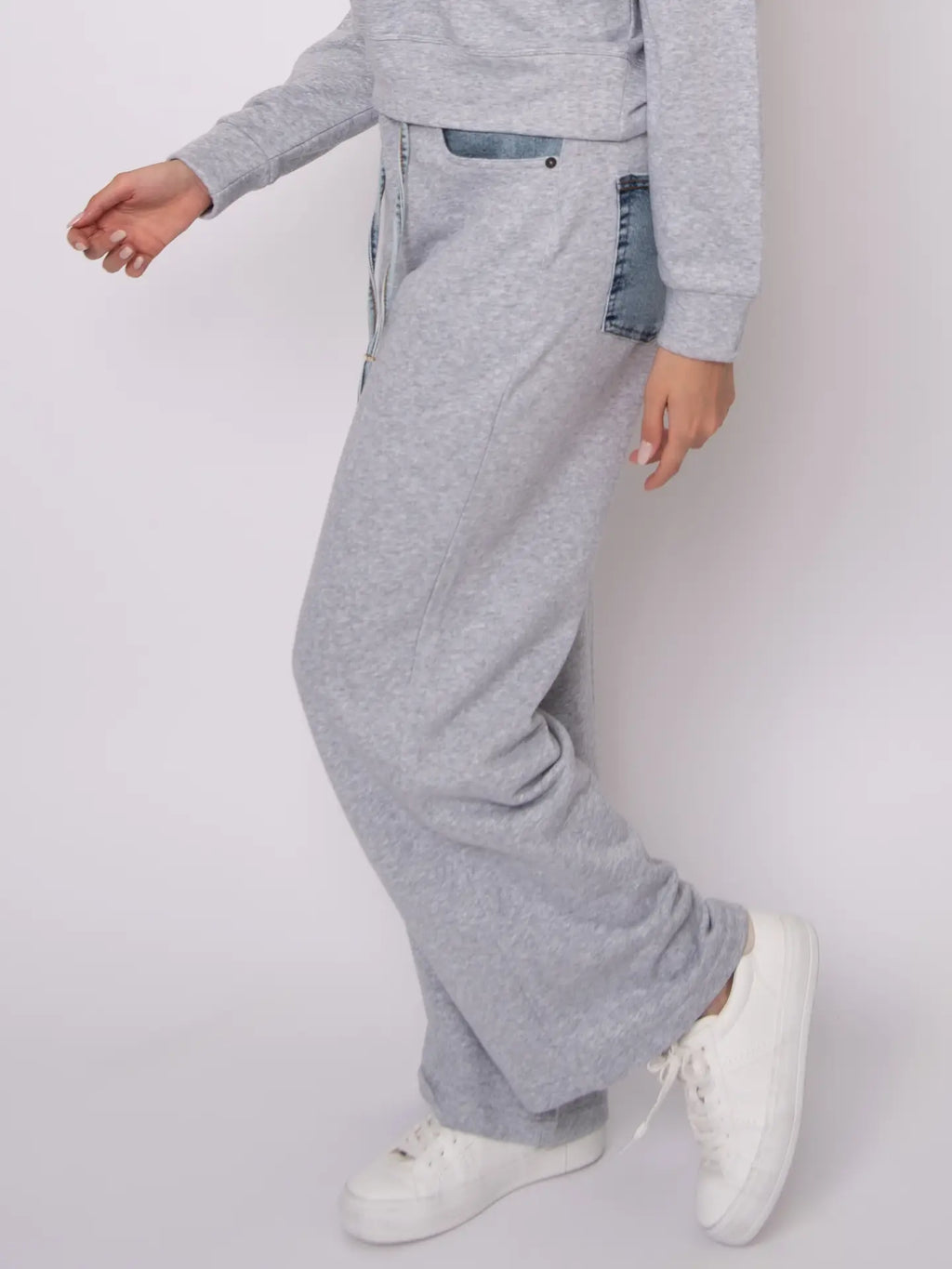 French Terry Pants with Denim Detail