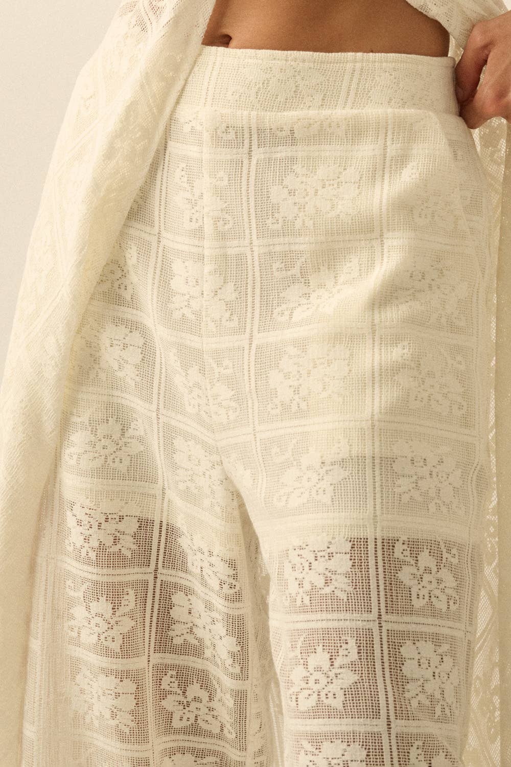 Floral Lace Elastic-Waist Wide-Leg Pocket Pants