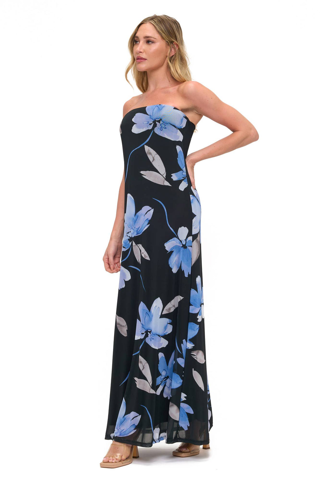 Strapless Floral Printed Maxi Dress