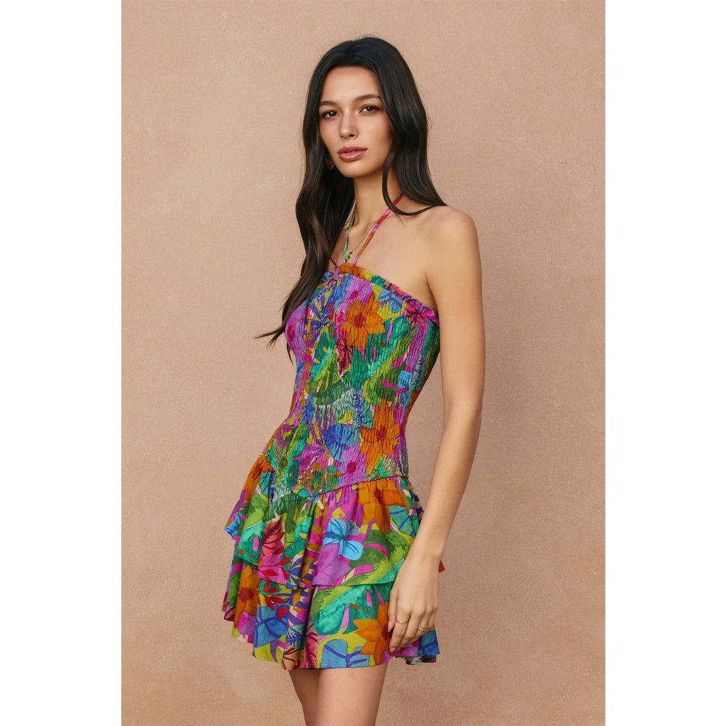 Resort Botanica Ruffled Halter Mini Dress