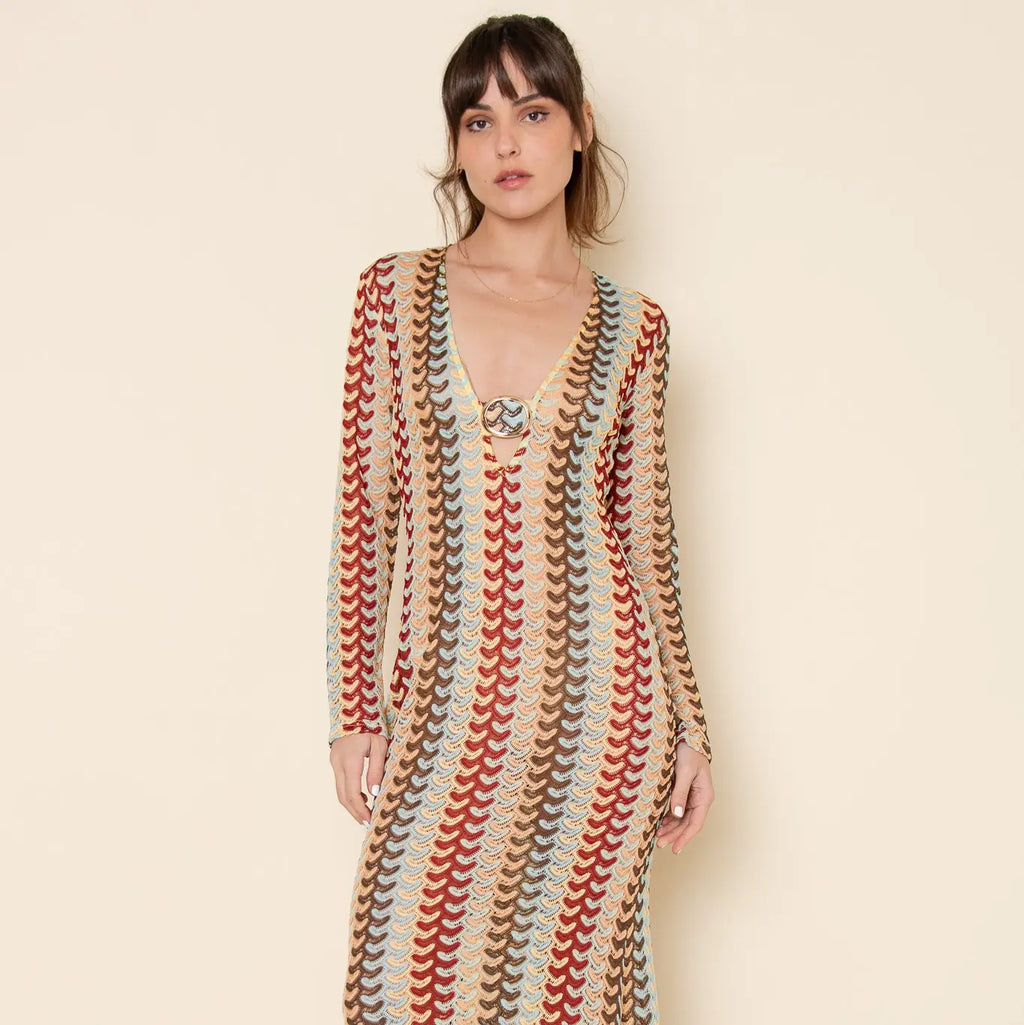 Crochet Long Sleeve V-Neck Maxi Dress