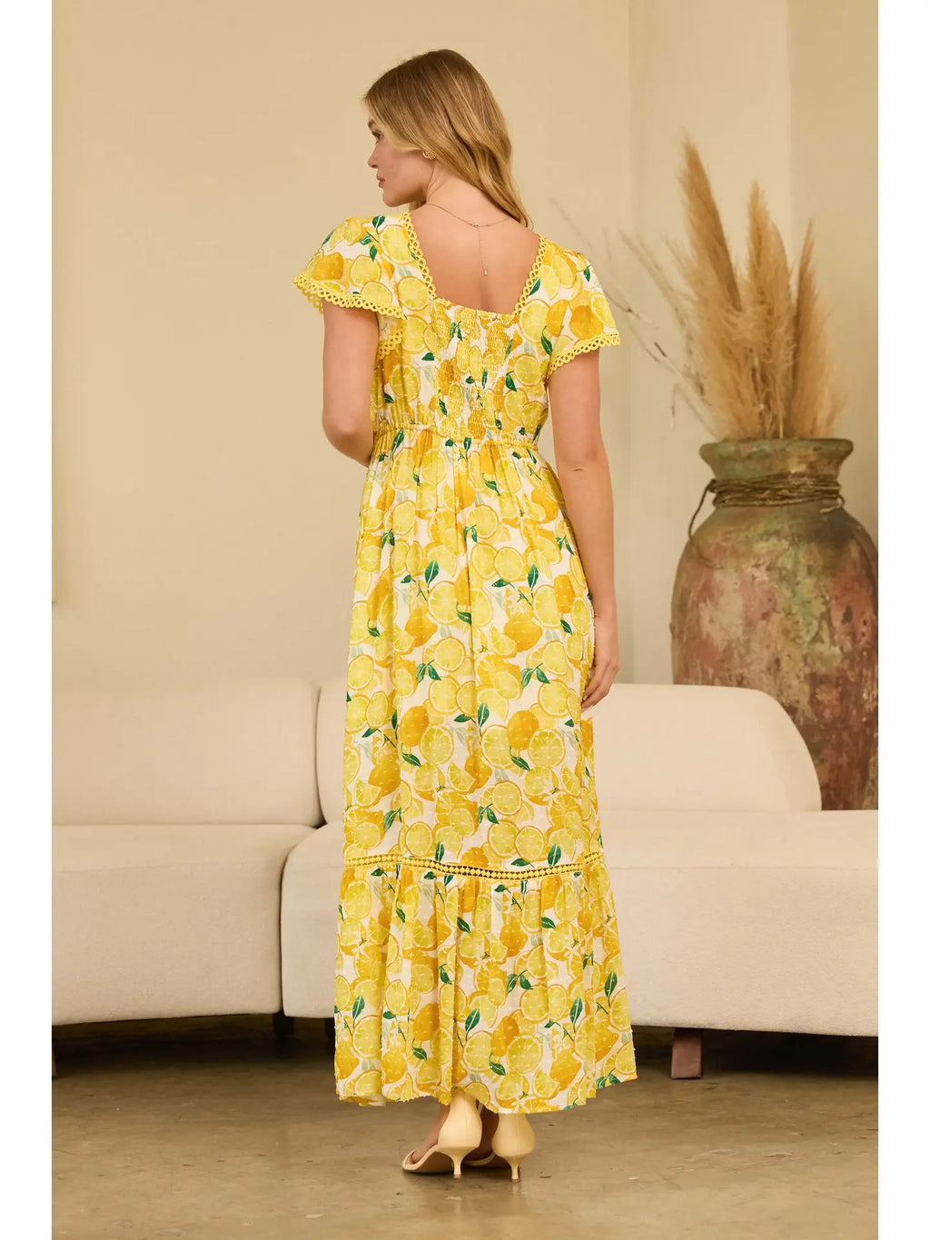 Swiss Dot Lemon Printed Maxi Dress