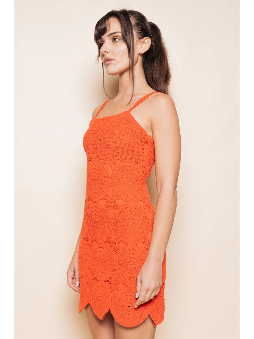 Crochet Spaghetti Strap A-Line Mini Dres