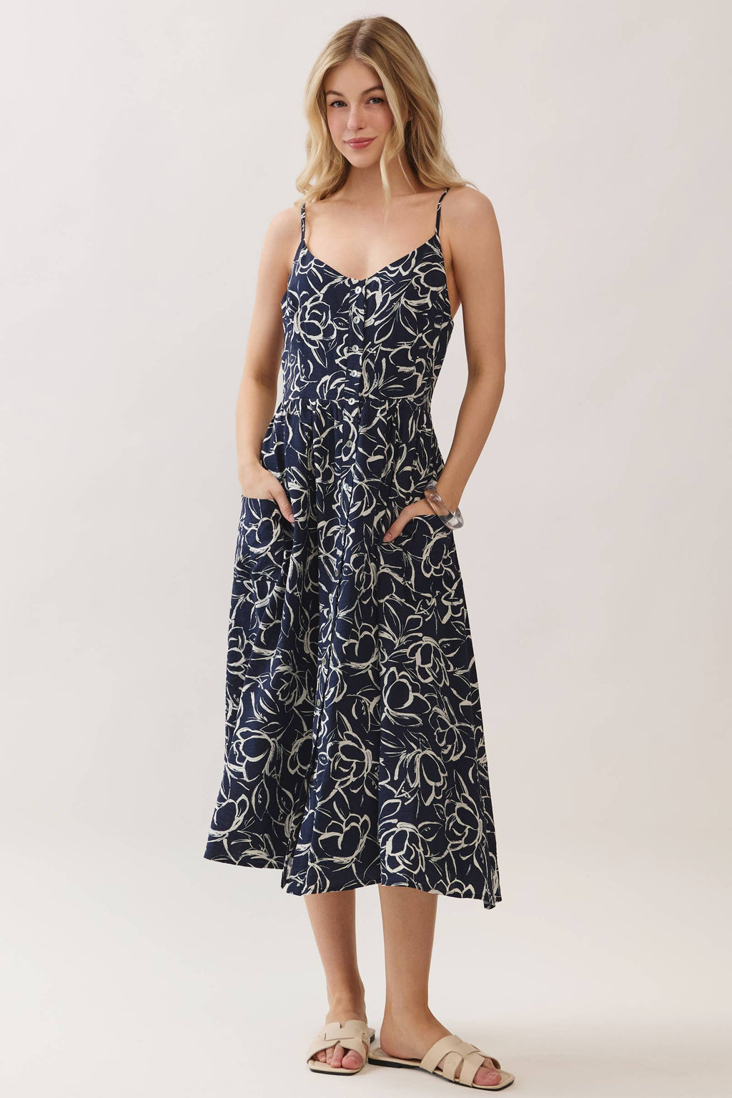 Front Patch Pocket Button Up Cami Midi Dress
