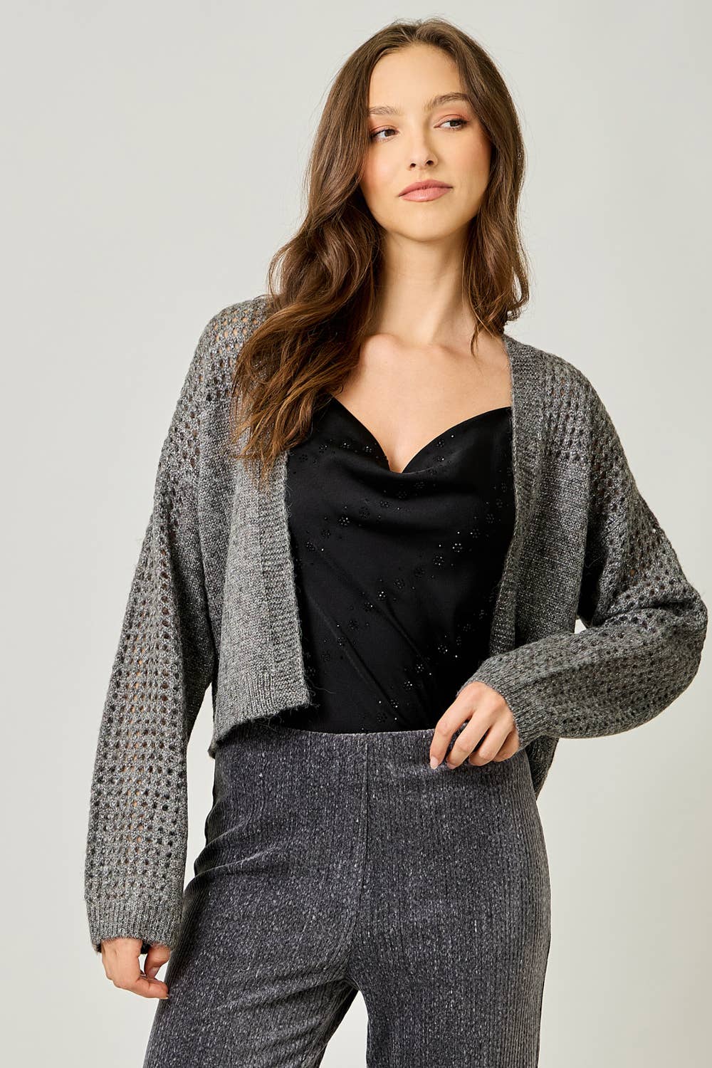 Summer Knit Sheer Cardigan Bolero Shrug Cover- Storm Grey