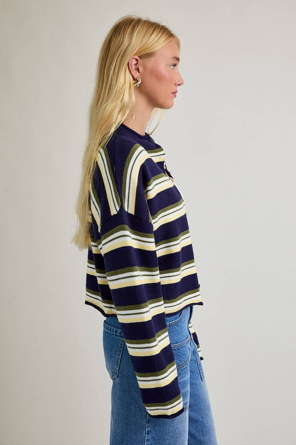 Ribbed Trim Button Down Long Sleeve Cardigan