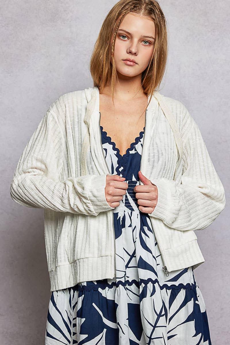 Rib Cuffs Hem Relaxed Fit Solid Hooded Zip-Up Jacket