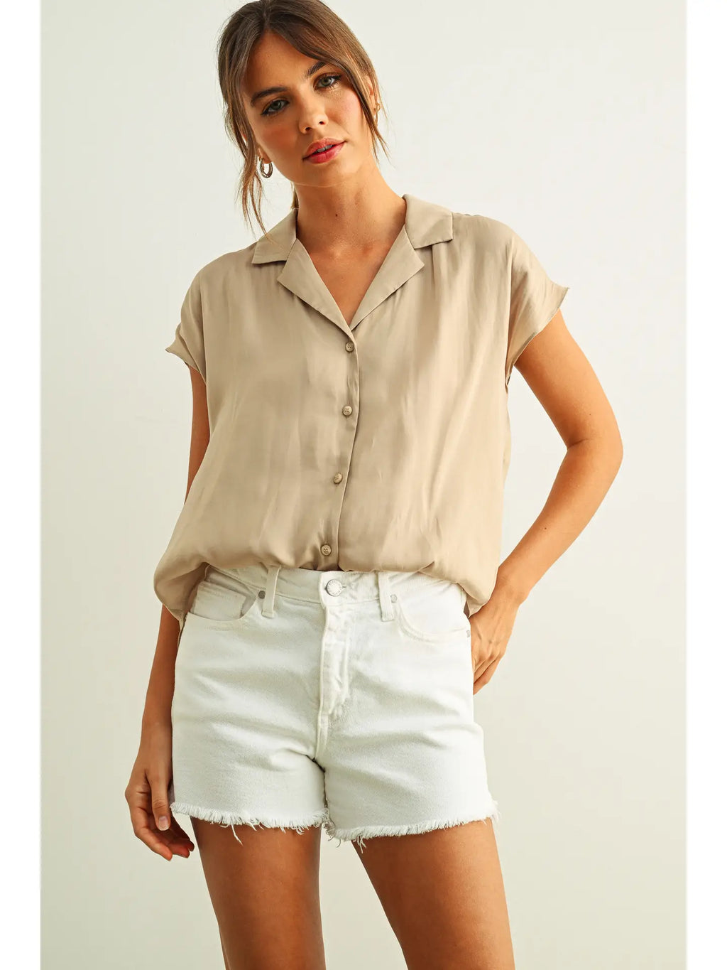 Button Down Cap Sleeve Shirt