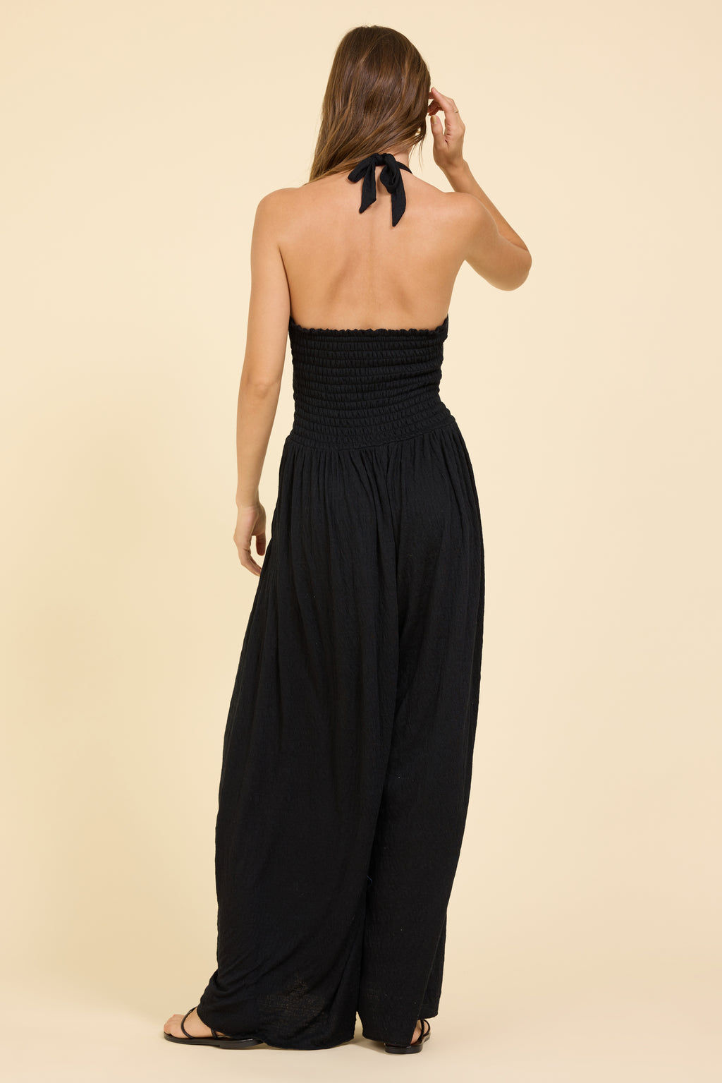Surplice Waist Smocked Sleeveless Jumpsuit