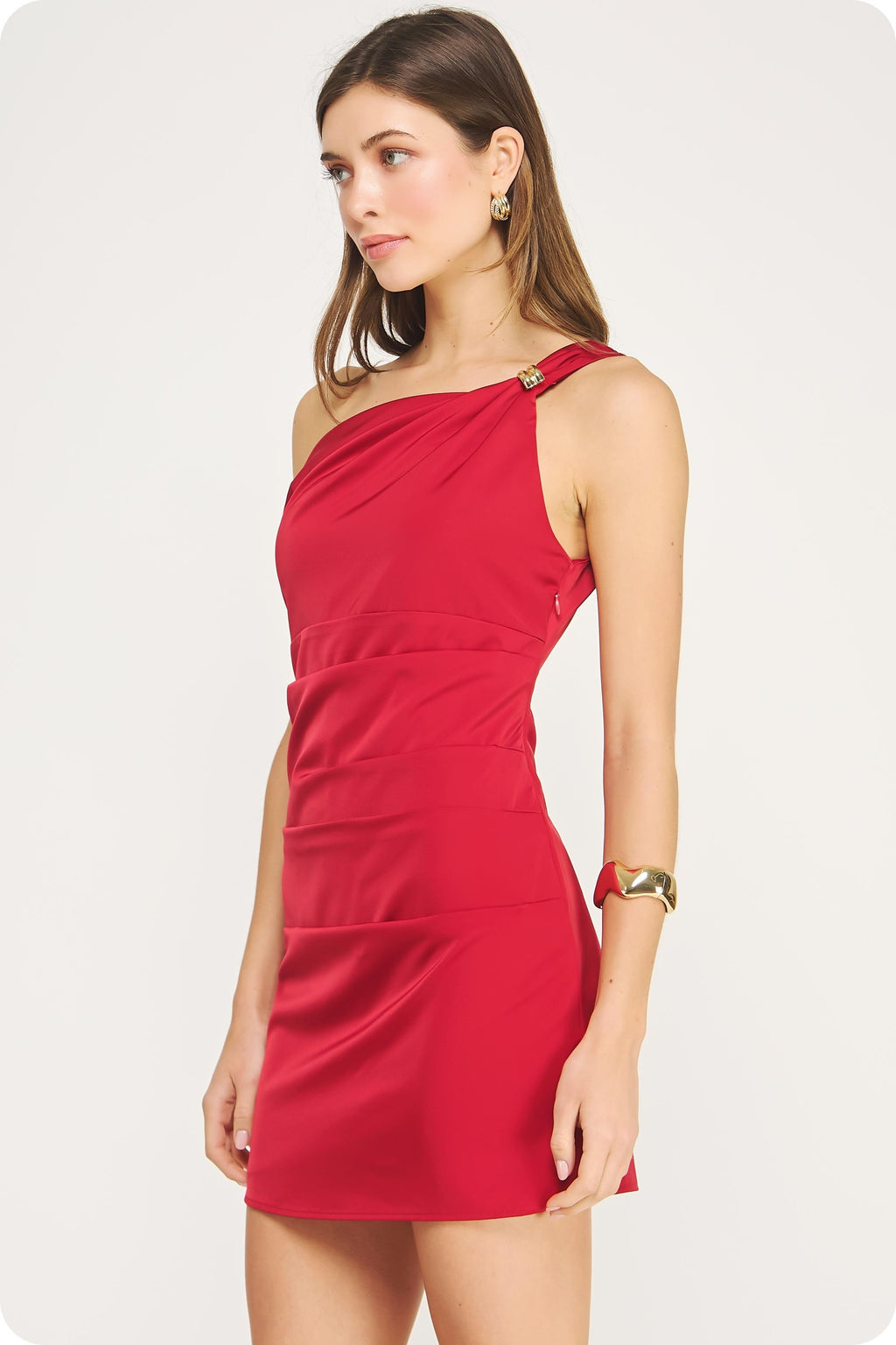 Asymmetric Satin Mini Dress with Gold Ring Detail
