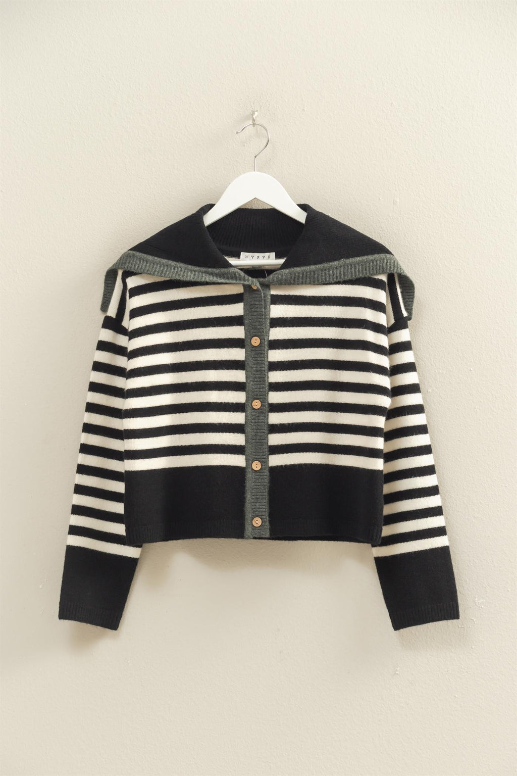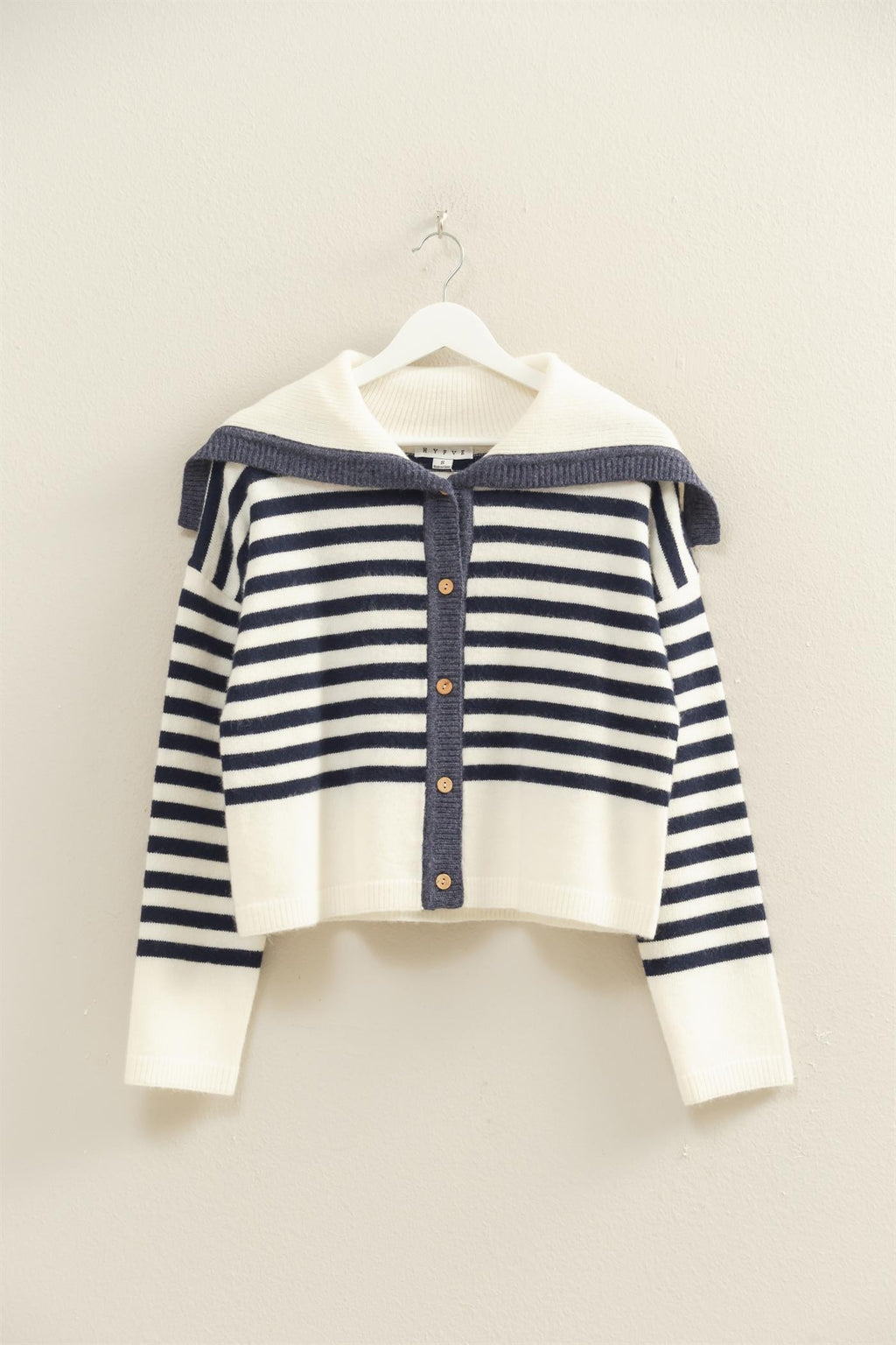 Striped Button Up Sailor Collar Sweater
