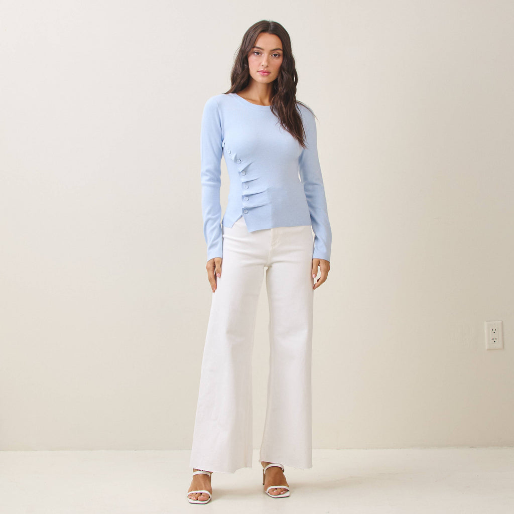 Side Button Pleated Split Top