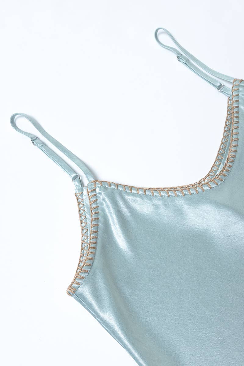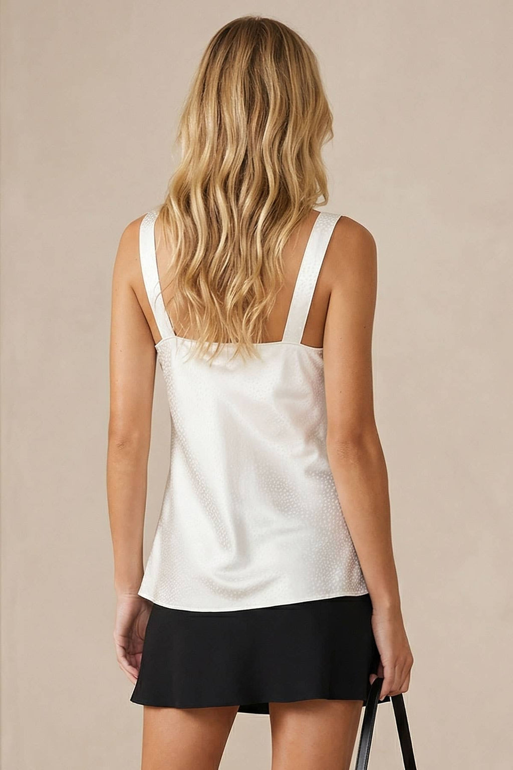 Soft Textured Front Placket Wavy Lace Sleeveless Top
