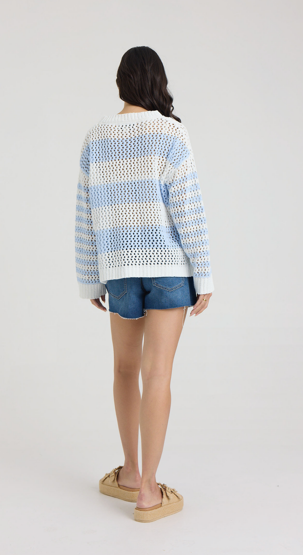 Vintage Havana White Blue Stripe Open Knit Sweater